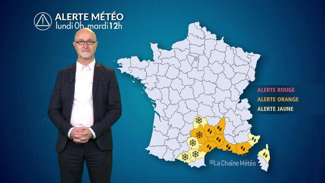 En montagne, des conditions de blizzard s'installent lundi avec une neige lourde et collante dès 700 à 1000 m sur le sud du Massif central, l'est de la chaîne des Pyrénées et le sud des Alpes. Les épaisseurs pourront atteindre 50 cm vers 1000 mètres avec des formations de congères d'ici mardi.